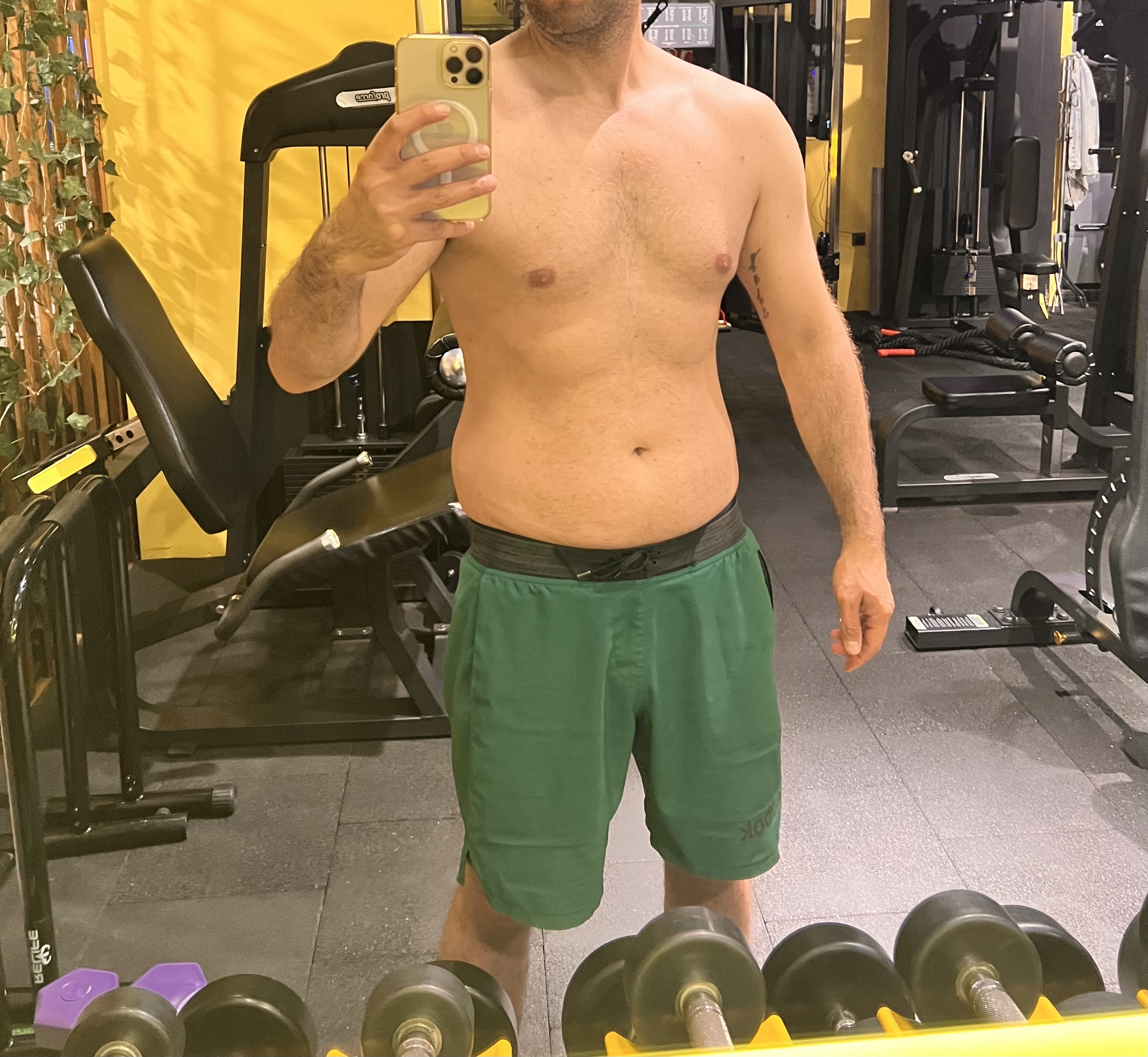 Üst göğüs yapsanız o meme sarkması azalır. Omuzlarda asimetri mı var acaba? Sanki ikinci fotoda öyle görünüyor? Posturden mı kaynaklı yoksa, daha çok foto çekin, sorunu anlamaya çalışın, eğer bir tarafın sırt ve kat kasları zayıf ise o omuz düşük durabilir. Makina yerine dumbell ile düzeltmeyi deneyin.