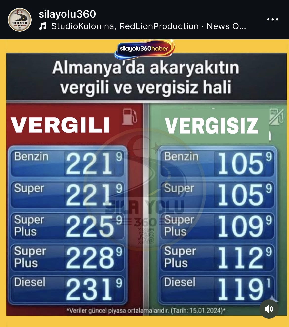< Resime gitmek için tıklayın > Bizde de Almanya’da ki gibi vergi litre başına 60 TL kadar olmuş olsa mazot sanırım bugün 100 TL’den fazla olabilirdi. Çok şükür devletimiz var. Aklıma gelenler: * Elektrik bedavadan az pahalı. *Lpg fiyatları da kullanıcıları için elektrikli araçlar ile yarışıyor. *Hanelerin doğalgaz bedelleri de çok uygun. Büyükşehirle’de su ücretleri neden görece pahalı onu bir türlü anlayamadım. Gerçek verilerdir. |