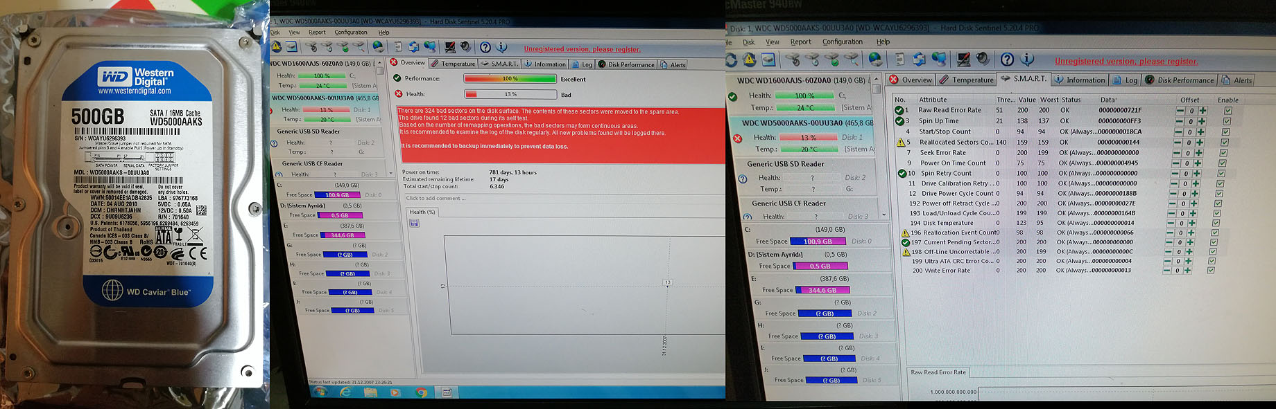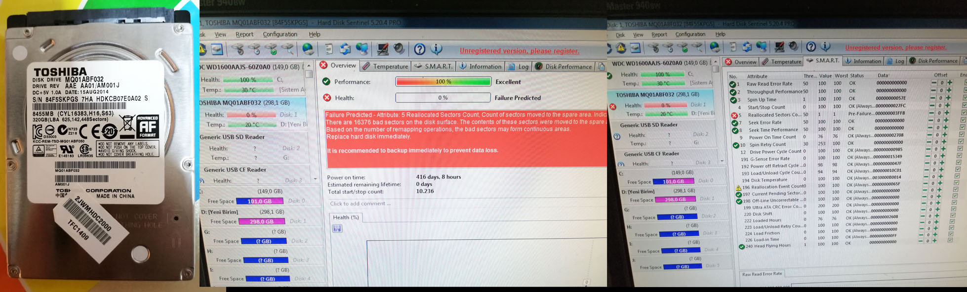 Bad sector smart hatalı adetli diskler mevcut elimde.