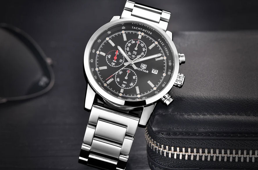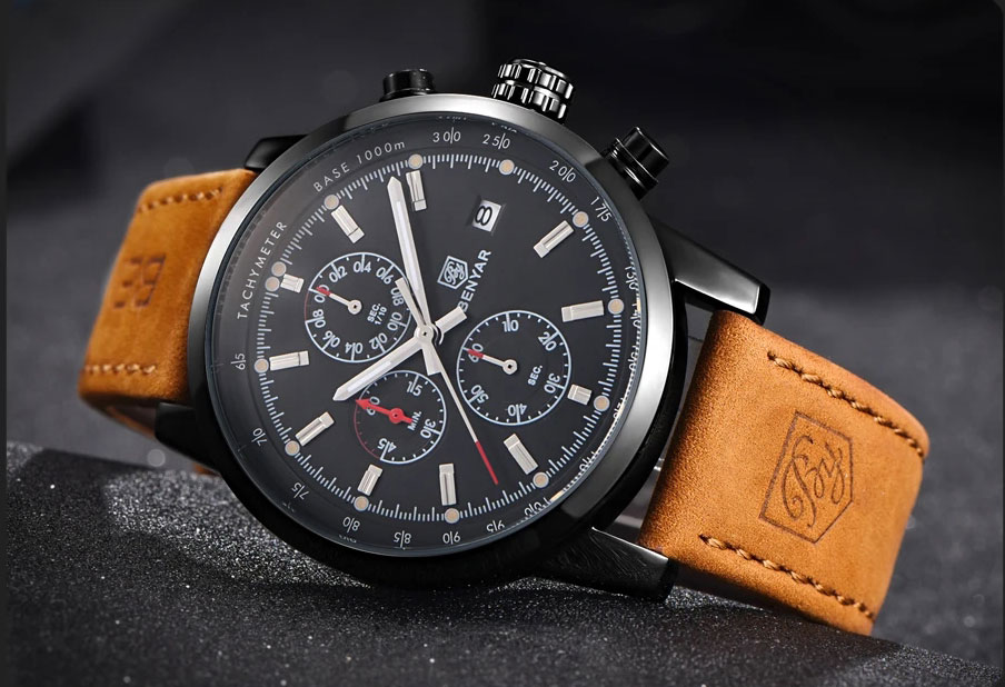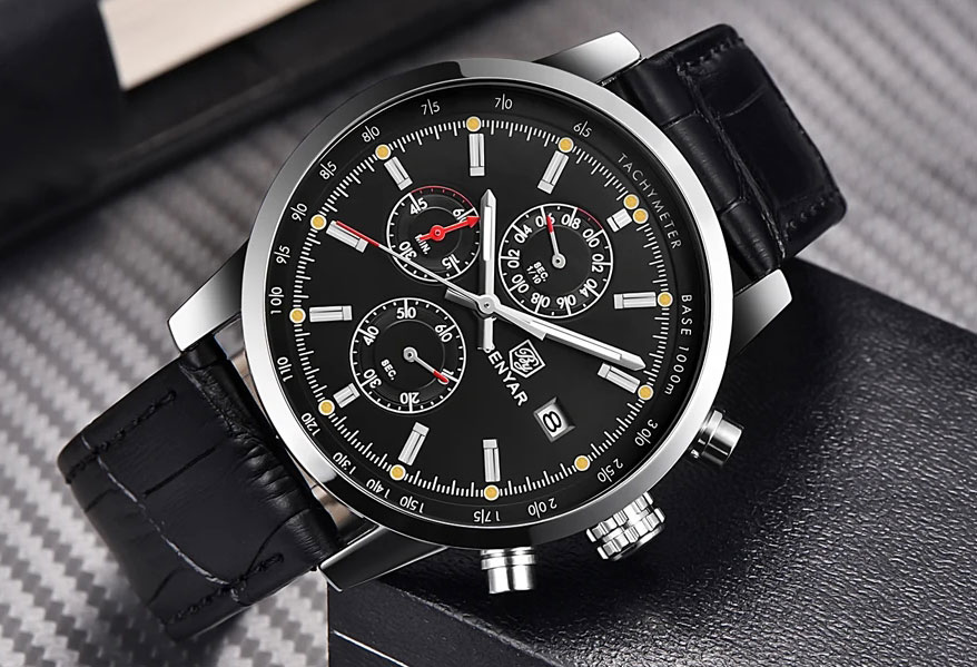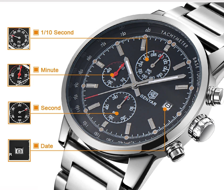 Second Paslanmaz Çelik Kadran 44MM, 3ATM Su Geçirmezlik, Buzağı Derisi Kordon
