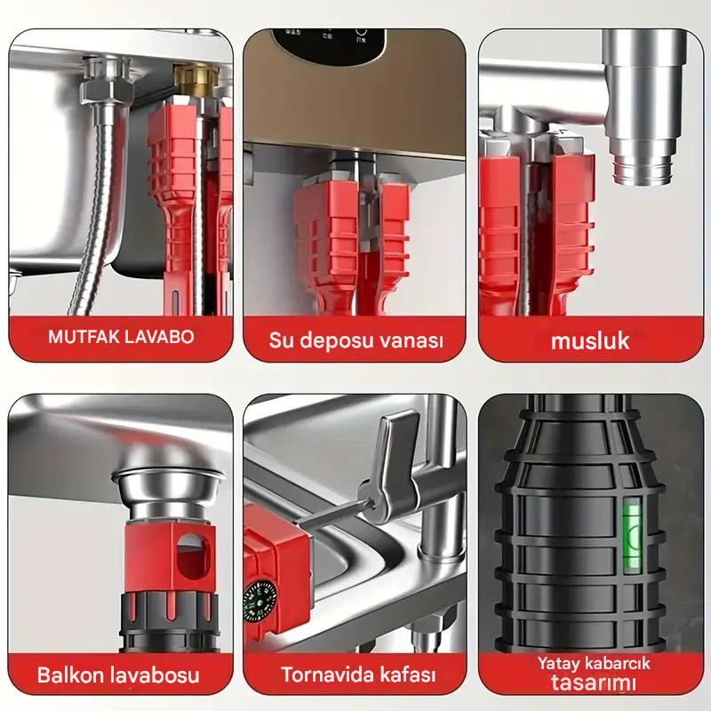 Mutfak & Banyo için 24'ü 1 Arada Musluk Tamir Alet Seti - Dayanıklı Kırmızı/Siyah