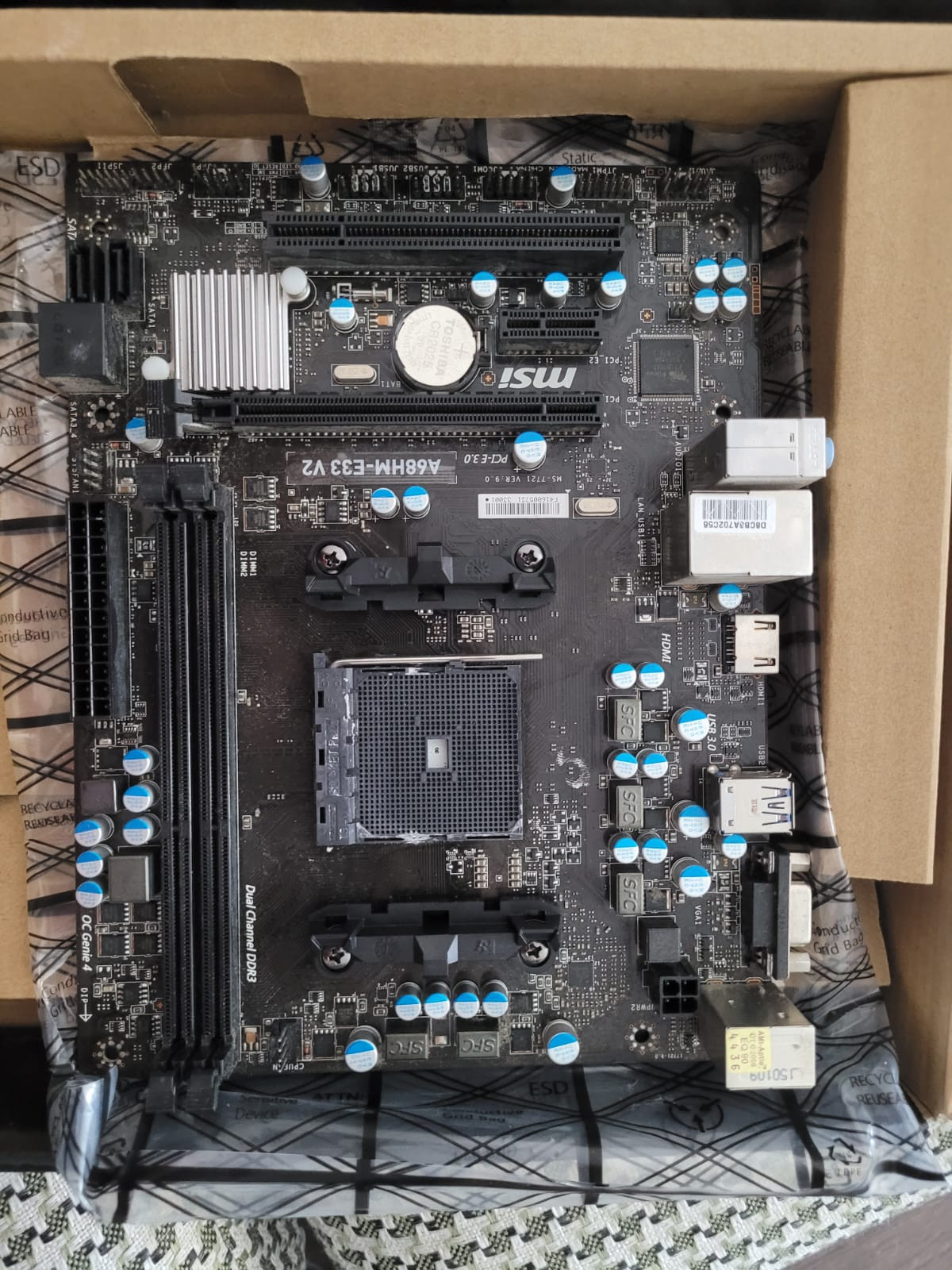 Arızalı MSI A68HM-E33 V2 Amd A68 Soket FM2P DDR3 2133(OC) Anakart. Sorunu anakart açılıyor 15dk sonra kendi kendini kapatıyor. USB kontrol chiplerinde hata var değiştirilirse sorunsuz çalışacaktır. Resimlerde işaretledim.