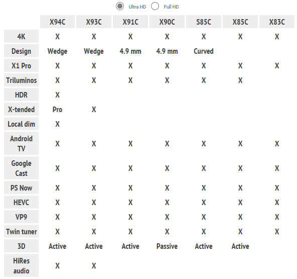 X8305C - Uhd - Edge led - 100hz - HEVC/H.265(60p) ? - HDMI 2.0 - USB 3.0 - DVB-T2 - Android