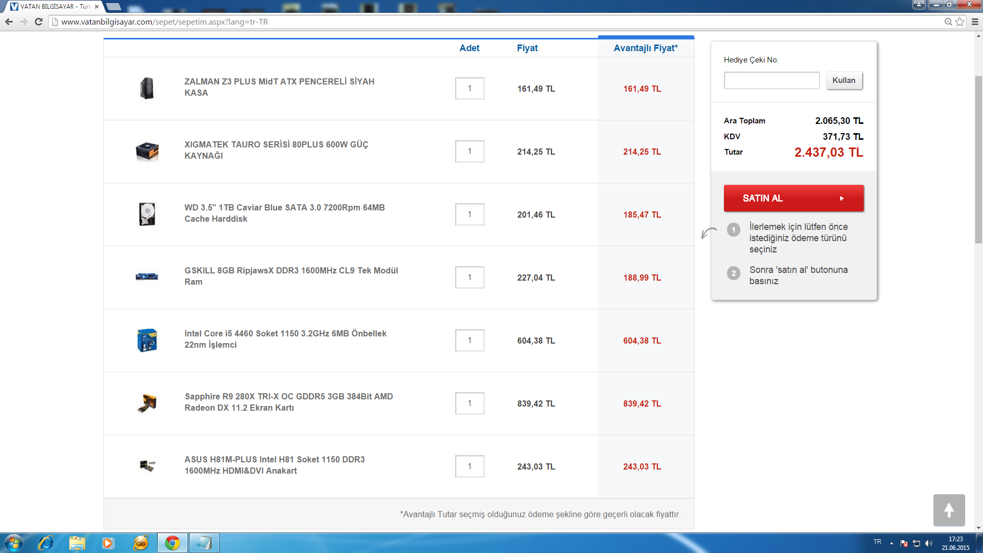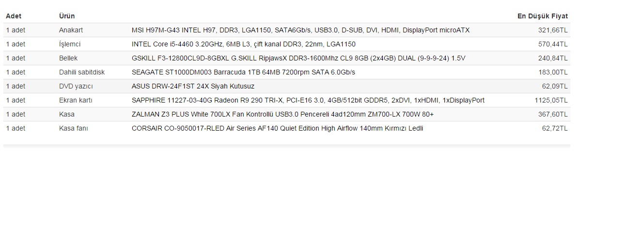 Intel Core i5 4460 3.2 GHz 6MB Gigabyte Z87M-D3H/DDR3 1600MHz Crucial 2x4GB 1600MHz DDR3 Corsair 550W CP-9020097-EU GALAXY GTX970 EX OC BLACK 4GB 256Bit Sandisk 128 GB SSD Disk Sata 3 Zalman Z3 Plus Mid Tower Kasa/Siyah 2700 tl, sinerji.gen.tr |