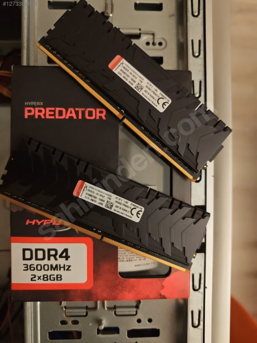 Çalışan sistemden sökülmüş ramlar. HYPERX Predator Ddr4 3600. 2 adet 8GB. Toplam 16 GB