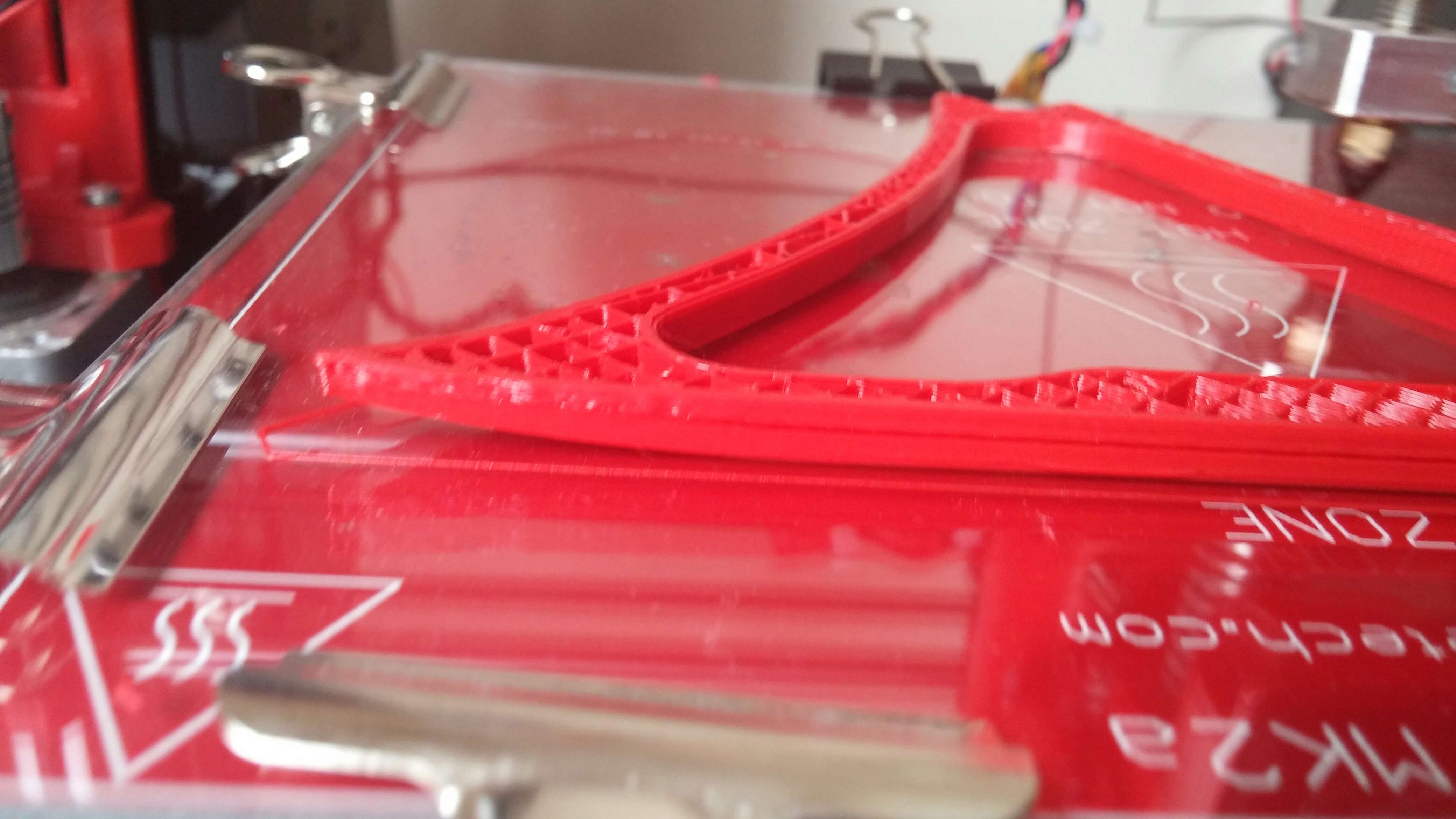 Bugün birkaç baskı daha aldım ilk büyük parça denemem oldu :) ilk baskıda 80mm/sn baskı 40mm/sn dış ceper baskı hızı olarak yazdırdım arada pencereyi açmıştım gelen rüzgar ile soğuyan baskının uc kısmı havaya kalktı:(( ama baskıyı durdurmadım kendi kendine üst katmanlarda düzeltti kendini :) filament tutucu ayak yaptığım için baskı kalitesini pek önemsemedim :):)