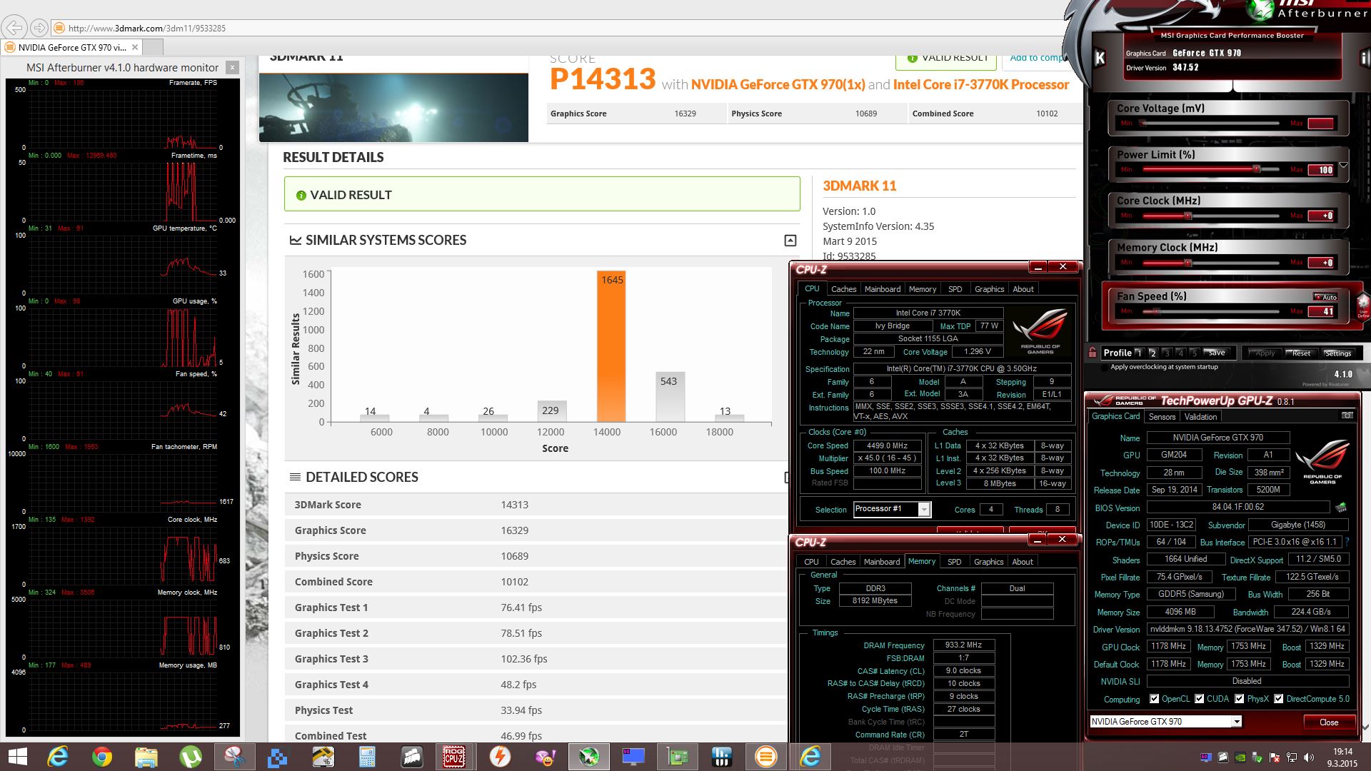 bilgilendirme amaçlıdır. test verilerim aşağıdadır. sorumluluk kabul etmem asla. yapıp yapmamakta kendiniz serbestsiniz. Her gtx 970 bu frekanslara çıkamadığı gibi her gigabyte gtx 970 g1 o.c bu hıza çıkamayabilir ayrıca her kullanıcıda bu hızlara çıkamayabilir. auto fanda standart hava soğutma ile kasa kapağı kapalı ortam 18 derecede gerçekleşmiştir testler. standart ve o.c lu p ve x ayrıntılı test verilerim aşağıdadır. alıntı yapmayınız. 3dmark11 P o.c lu http://www.3dmark.com/3dm11/9533103 ----- i7 3770k ve gtx 970 clansmanında 134 cü 3dmark11 P o.c suzhttp://www.3dmark.com/3dm11/9533285 3dmark11 X o.c luhttp://www.3dmark.com/3dm11/9533188?resultRegistrationOutcome=KEY_IN_ANOTHER_ACCOUNT_CURRENT_ACCOUNT_FREE ----- i7 3770k ve gtx 970 clansmanında 1 ci ve 3 cü 3dmark11 X o.c suzhttp://www.3dmark.com/3dm11/9533243?resultRegistrationOutcome=KEY_IN_ANOTHER_ACCOUNT_CURRENT_ACCOUNT_FREE < Resime gitmek için tıklayın >< Resime gitmek için tıklayın >< Resime gitmek için tıklayın >< Resime gitmek için tıklayın > |