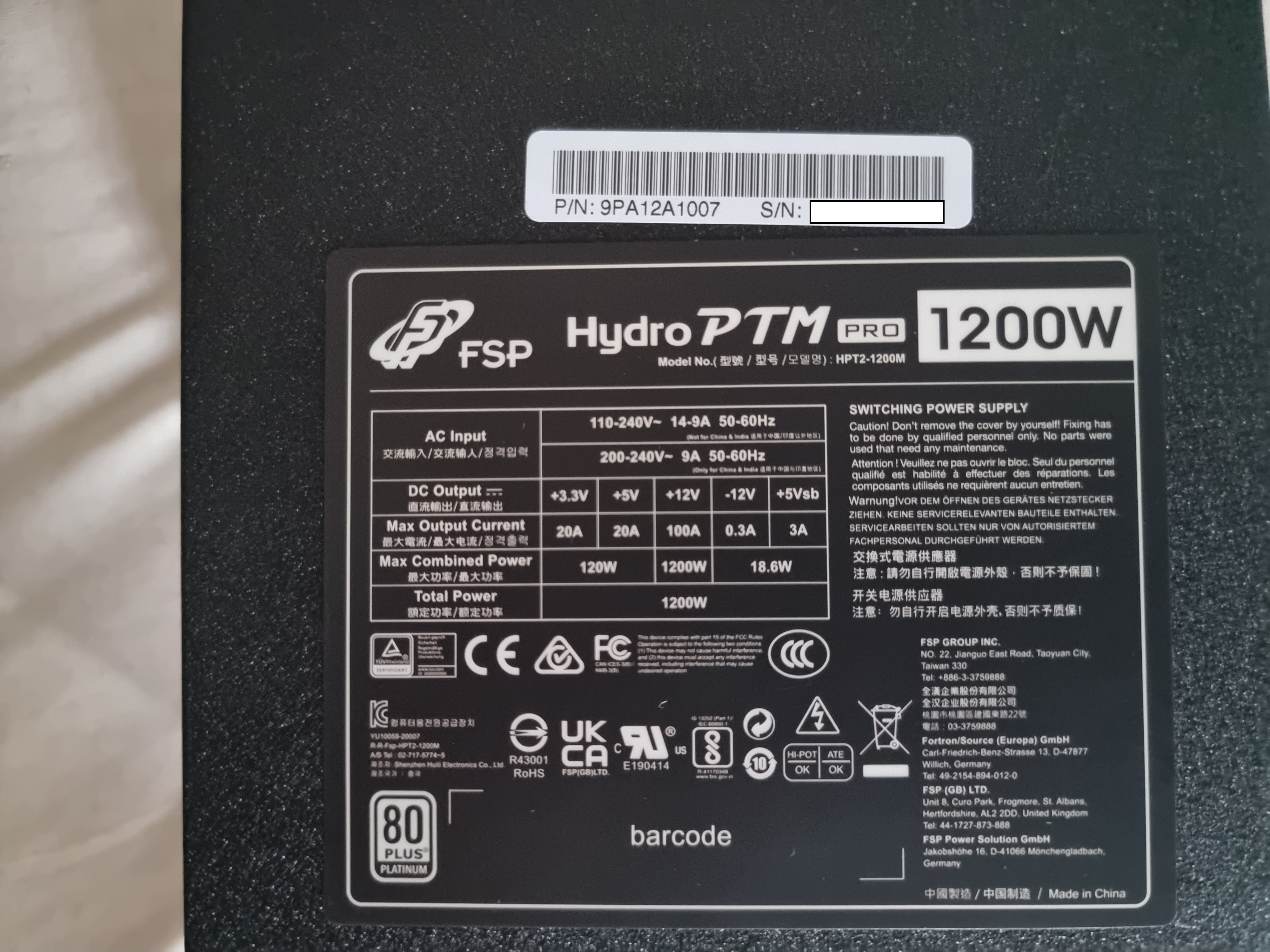Evet hocam.. Üzerinde resmen Hydro PTM Pro etiketi var ama psu tamamen başka bir model. Üzerinde P/N etiketi kalmış (9PA12A1007) onu aratınca 80 Plus Gold olan şu psu çıkıyor: