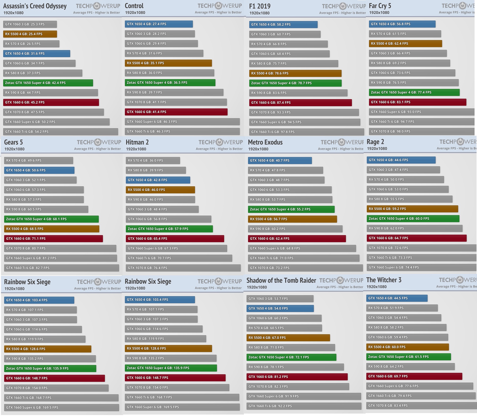 Aşağıda 8gb rx580 vs 1650super var ve benzer birsürü test bulabilirsin.