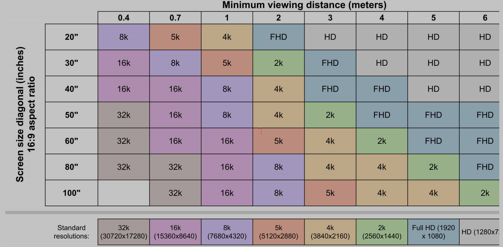 Hocam oyun, tasarım, 3D/VR'da özellikle ekrana 1 metreye kadar yakın baktığınızda pixel yoğunluğu ve çözünürlük fark ediliyor ancak mesafe artınca fark etmek zorlaşıyor, bu gayet normal bir fenomen. Aşağıdaki tabloda mesafe, çözünürlük ve ekran boyutu matriksini görebilirsin.
