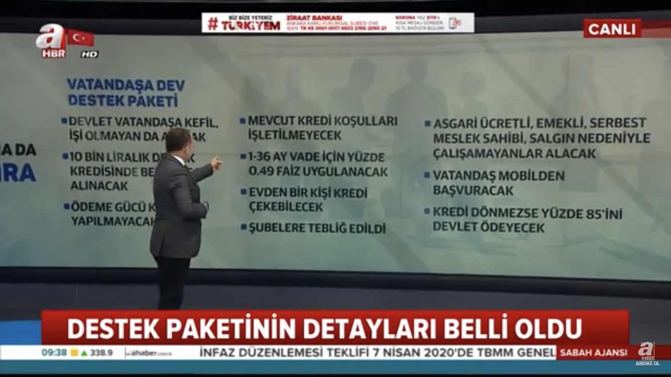 Muz cumhuriyetinde başka bir gün daha. Yurt dışındaki esnaf akrabalarım 4-5 bin euroya yakın parayı karşılıksız olarak aldı. Çoğu ülke vatandaşlara ayırdığı bütçenin büyük bir kısmını dağıttı. Bizde bırakın desteği, "BORÇ" olarak verilecek bir kredi için bile 2.haftaya girdik halen bekliyoruz. Verecekleri de kişi başı 800 dolarla 1.500 dolar arası bir kredi. Karşılıksız bir parada değil. "KREDİ" İnanın bu kadar beklenmesinden çıkacak tek sonuç "ÇOĞU KİŞİYE VERİLMEYECEK OLMASIDIR" Yoksa neden beklenecek?  |