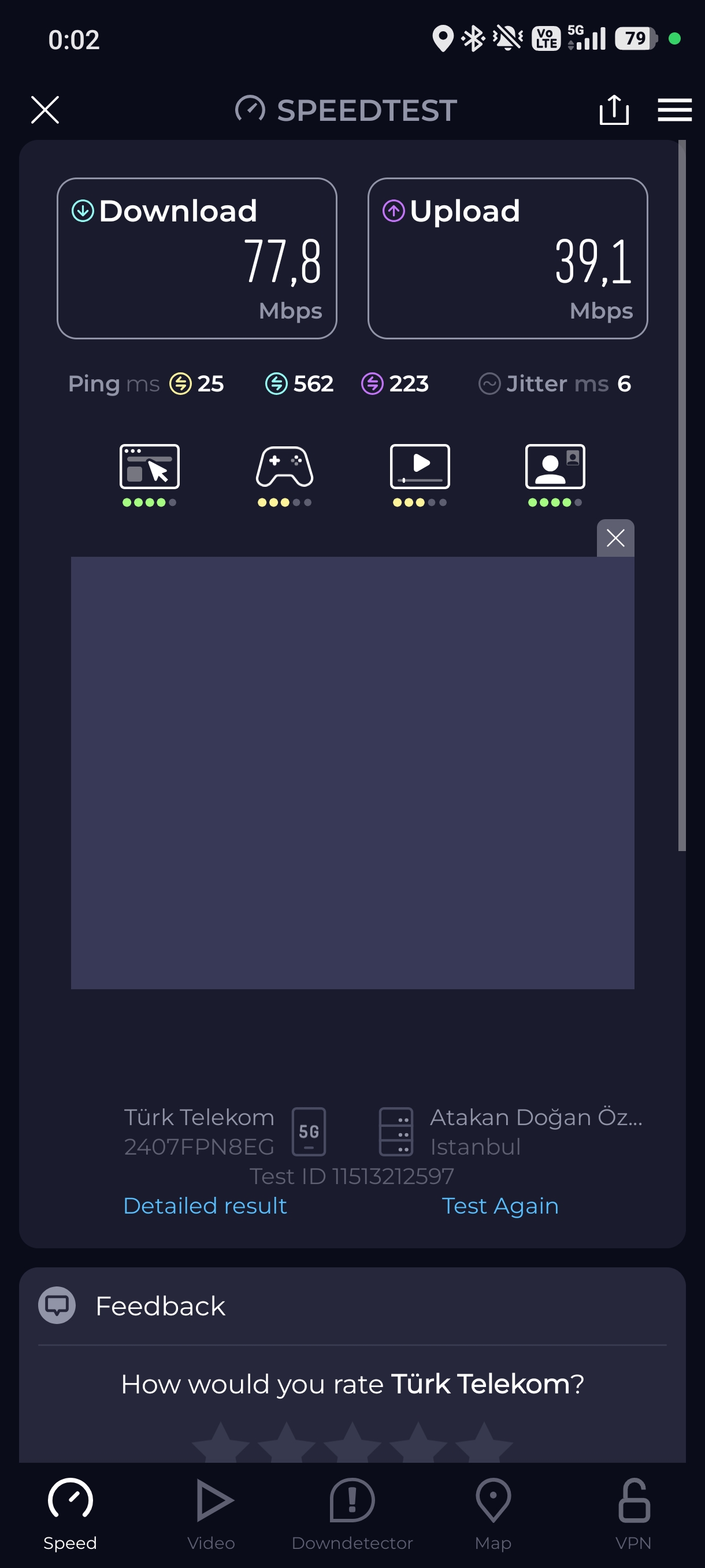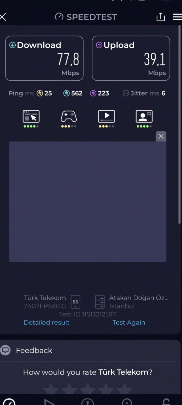| Dün gece TürkTelekom hattım da 5G bağlatısını gördüm ve hız testi denedim. Sanırım daha aktif değil. Gece bu saatte bu hız ne böyle 😡🤣 < Resime gitmek için tıklayın > < Resime gitmek için tıklayın > |