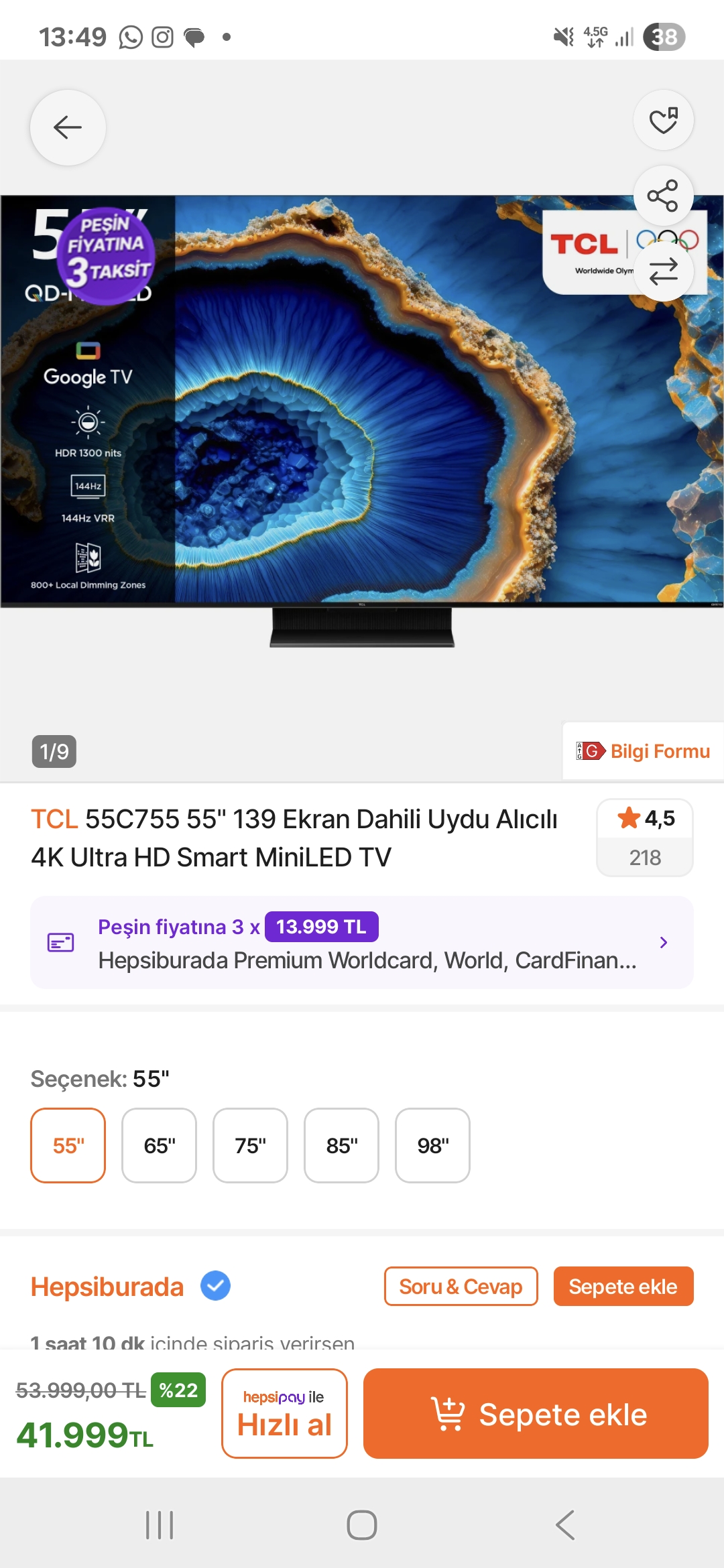 merhaba, bütçem 65k civarında. 75" (85" daha iyi olabilir ama bu bütçeye sanki zor) bir TV arayışındayım, ne önerirsiniz şu anda? |