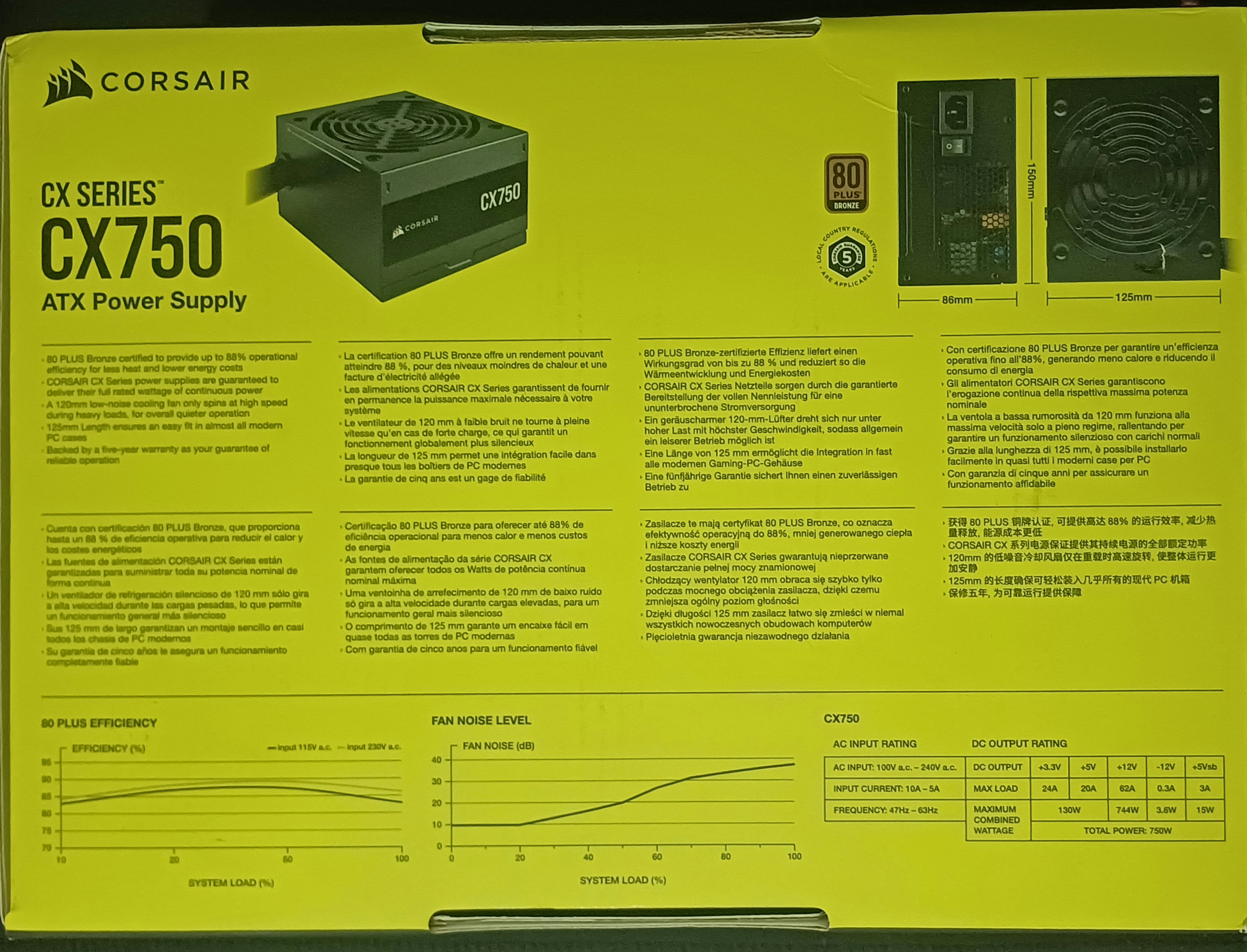 750W Corsair Güç Kaynağı 80+ Bronze Atx CX750 CP-9020279-EU