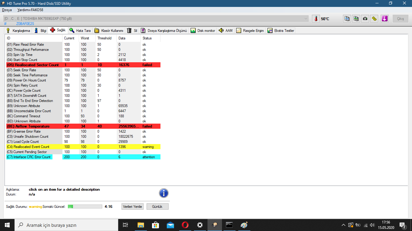 Şu anki hdd bilgileri görüldüğü üzere uçmuş.