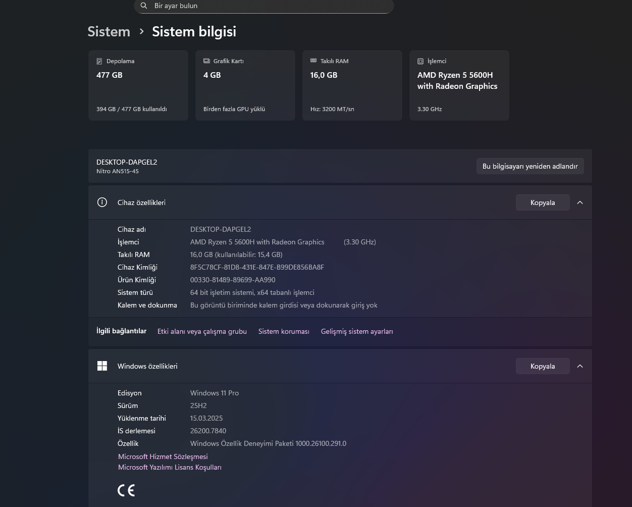 Bu başlık altında yer alan tüm ilanlar; 1 Acer Nitro 5 Rtx 3050 16gb ram AMD Ryzen 5 5600H İlana Git 05 Mart 2026 06:53