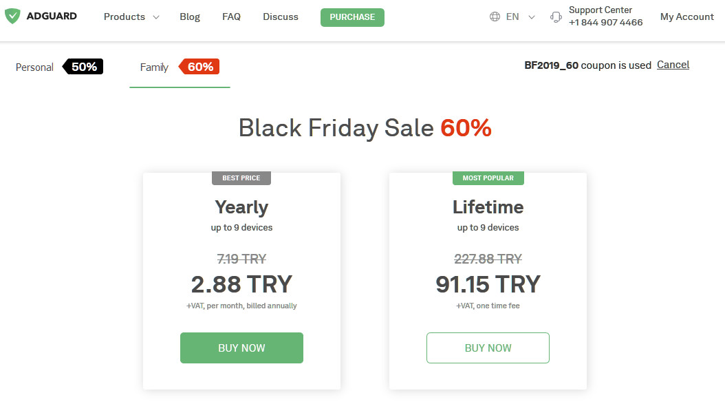 BF2019_60 coupon is usedhttps://adguard.com/en/license.html?checkout=true&devices=9&lifetime=false&promoCode=BF2019_60&aid=30005