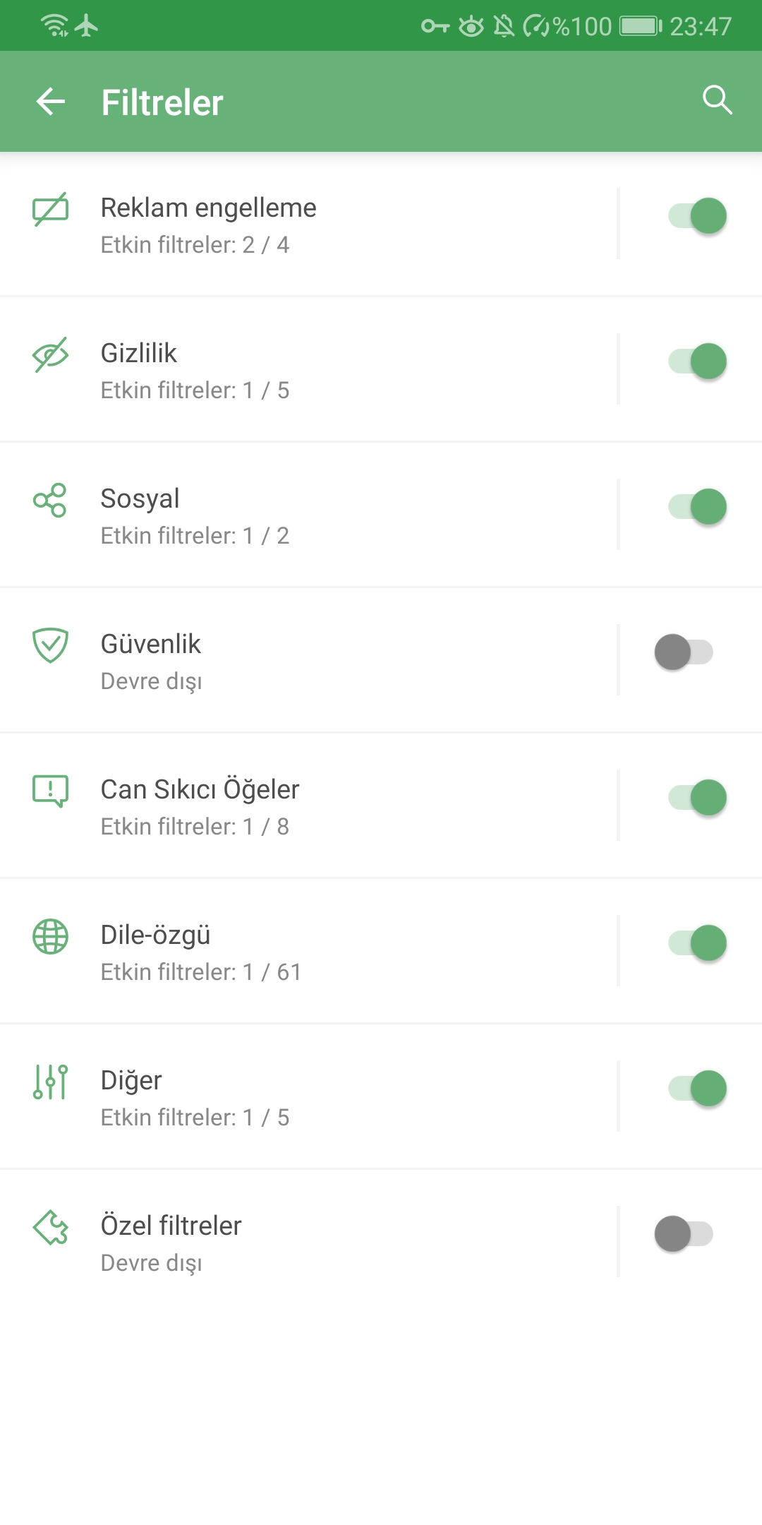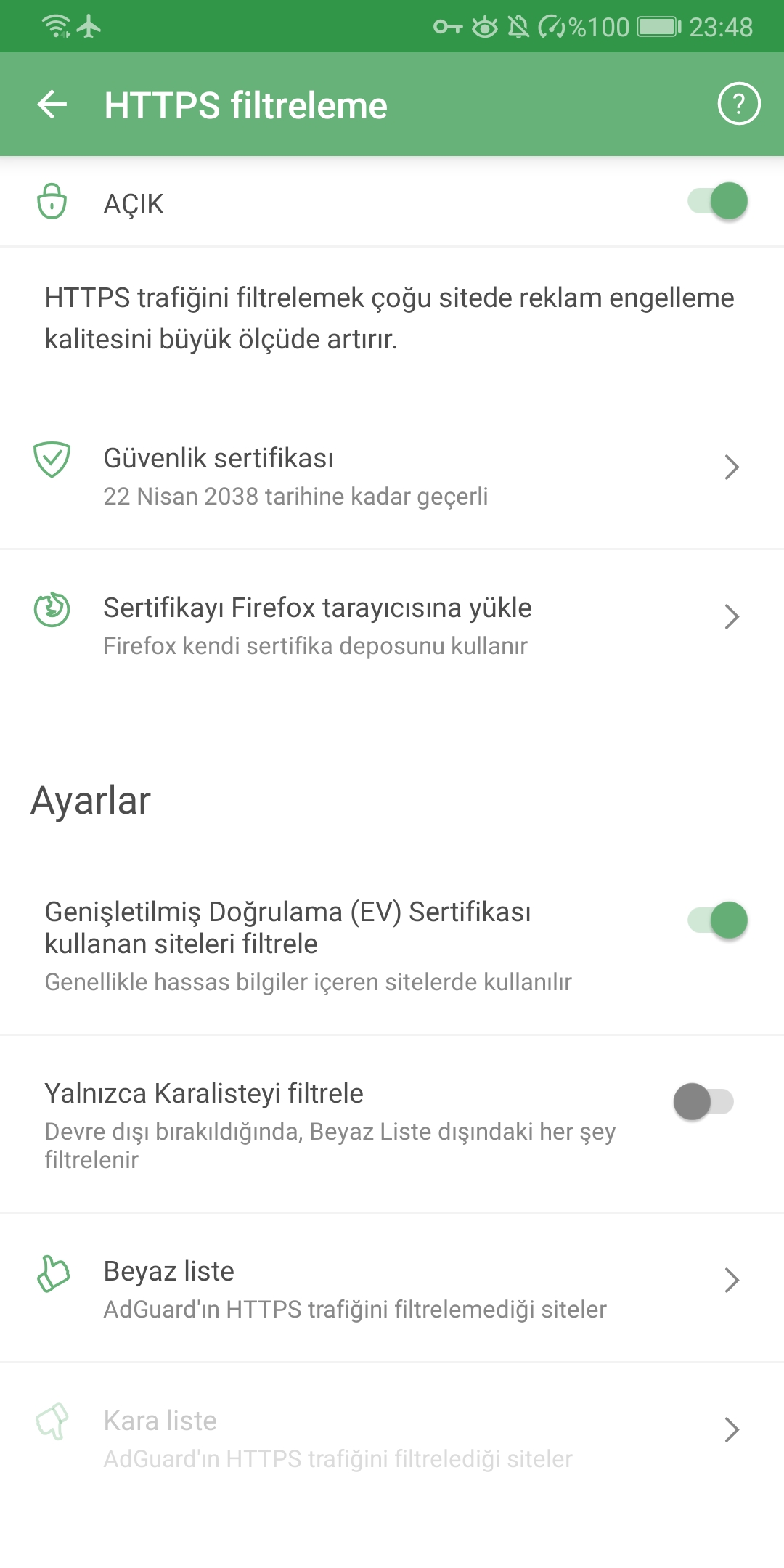 Android ayarları nasıl olmalı? Lisanslı kullanıcıyım. Bazen Telefonuma gelen bildirimleri, engelliyor, interneti bloke ediyor. Chrome tarayıcı kullaniyorum, hiç bir siteye girmeyebiliyor. Adguardı kapatıp tekrar açınca düzeliyor? |