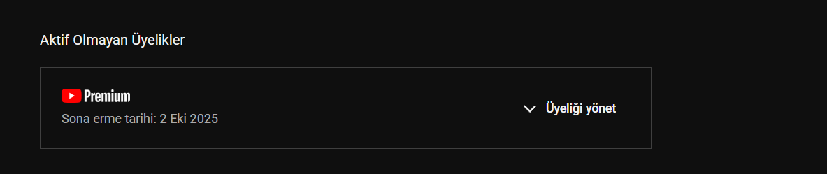 Daha önce aynı hesaptan YouTube Premium Aile üyeliğim vardı → iptal ettim.