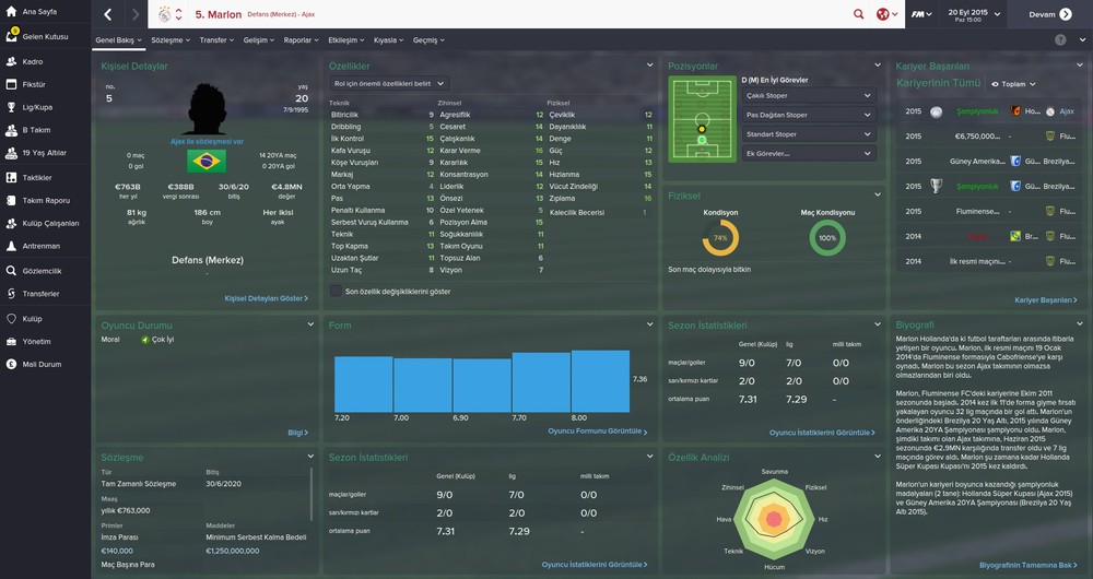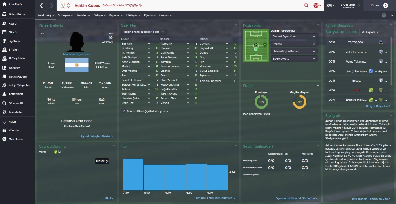 genelde kanatlar üzerinden oynadığım için biraz zayıf gözüküyor ama oyun içinde gayet iyi. oyun kurucudan beklentim skor üretmesinden çok kanatlara top dağıtması, tarıqın da karar verme, takım oyunu, pas özellikleri iyi. o yüzden işimi görüyor. sezon başında barcelonadan halilovic için çok uğraşmıştım ama vermediler. yeni sezonda savunmaya 2 takviye düşünüyorum, hücum hattı aynı kalacak. |