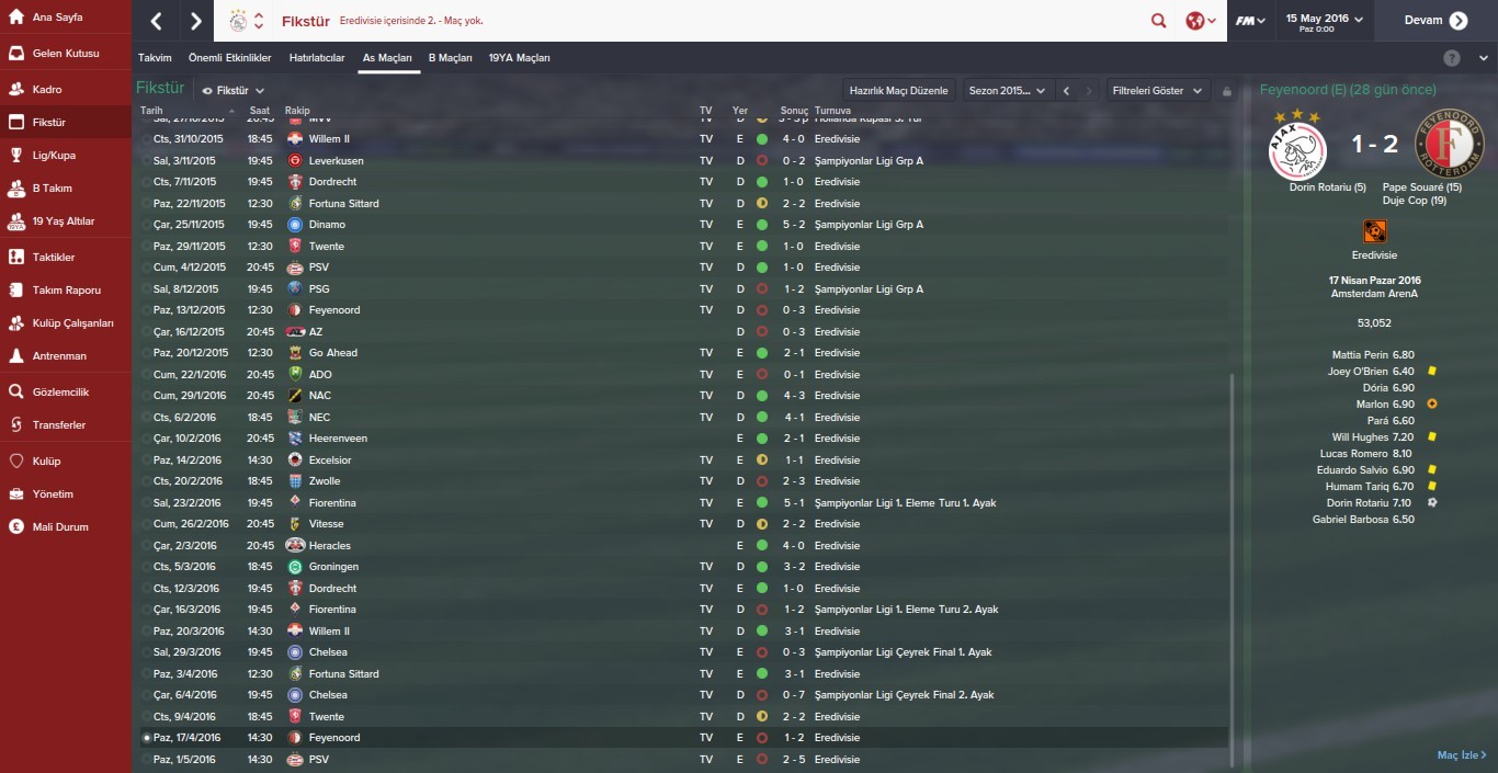 2015\2016 sezonunu daha ayrıntılı olarak işleyeceğiz.