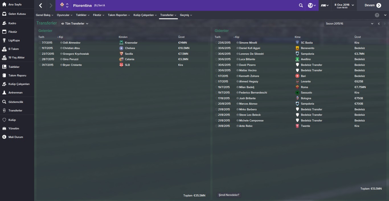 Hocam sıkıntı 2. sezonun başında çok büyük oyuncuları gönderip yerine onların yerini idare edebilicek oyuncular almanız daha sağlam transfer yaparsan 3. sezonş.liginde başarı alırsın |