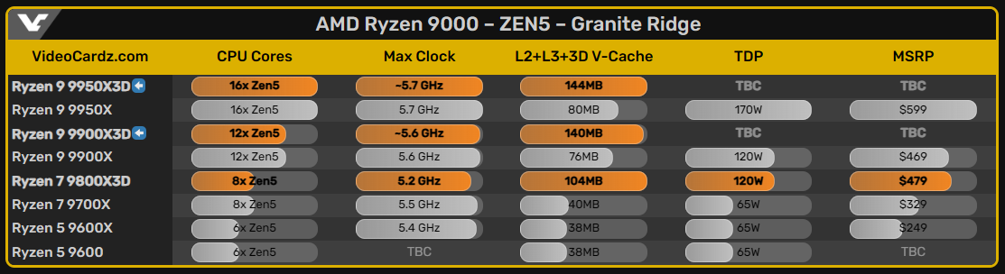 | Ryzen 9 9900X3D için fiyat 600 dolar, Ryzen 9 9950X3D içinse 700 dolar olacak diyorlar |