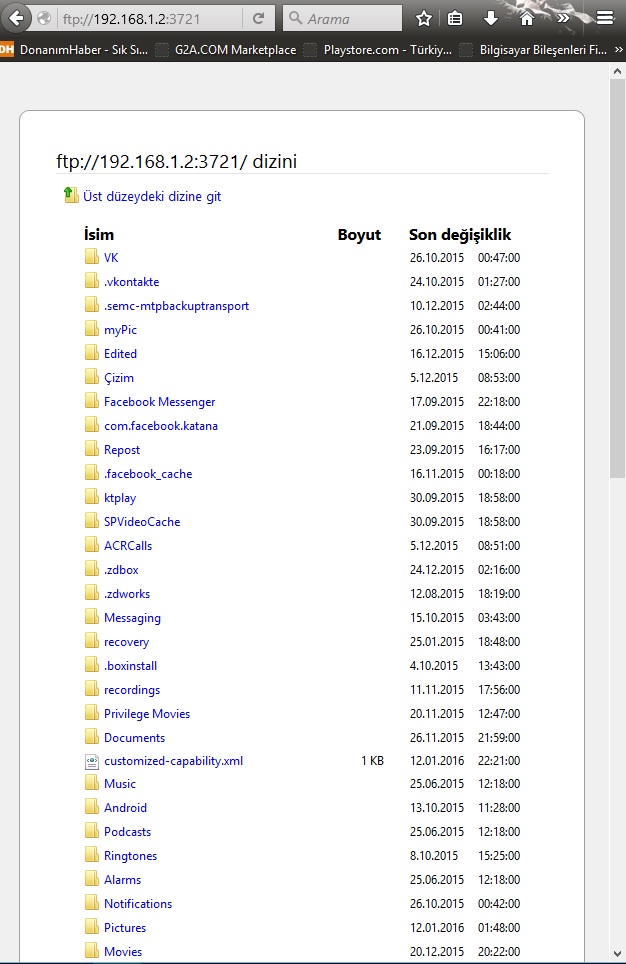 işini gördüyse ne mutlu bana. telefonundaki içeriklere ise ftp ekteki resimlerden es file explorer da ağ bölümünden ftp servisini açıp daha sonra tarayıcdan giriş yaparak dosyalarını indirebilirsin. fakat yönetemezsin. telefondaki dosyalarını pc den yönetimi sağlayan alternatif olarak airdroid var fakat es file explorer gibi evrensel olarak yapmıyor. aynı zamanda es file explorer ile başka bir android telefonun depolamasına bluetooth üzerinden ulaşabilirsin. onuda sol menü sekmesinde ağ sekmesinden bluetooth bölümünden iki cihazı bir birine eşleyerek yapabilirsin. < Resime gitmek için tıklayın >< Resime gitmek için tıklayın >< Resime gitmek için tıklayın >< Resime gitmek için tıklayın > |