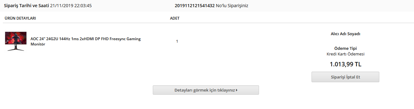 AOC 24' 24G2U 144Hz 1ms - 999 TL