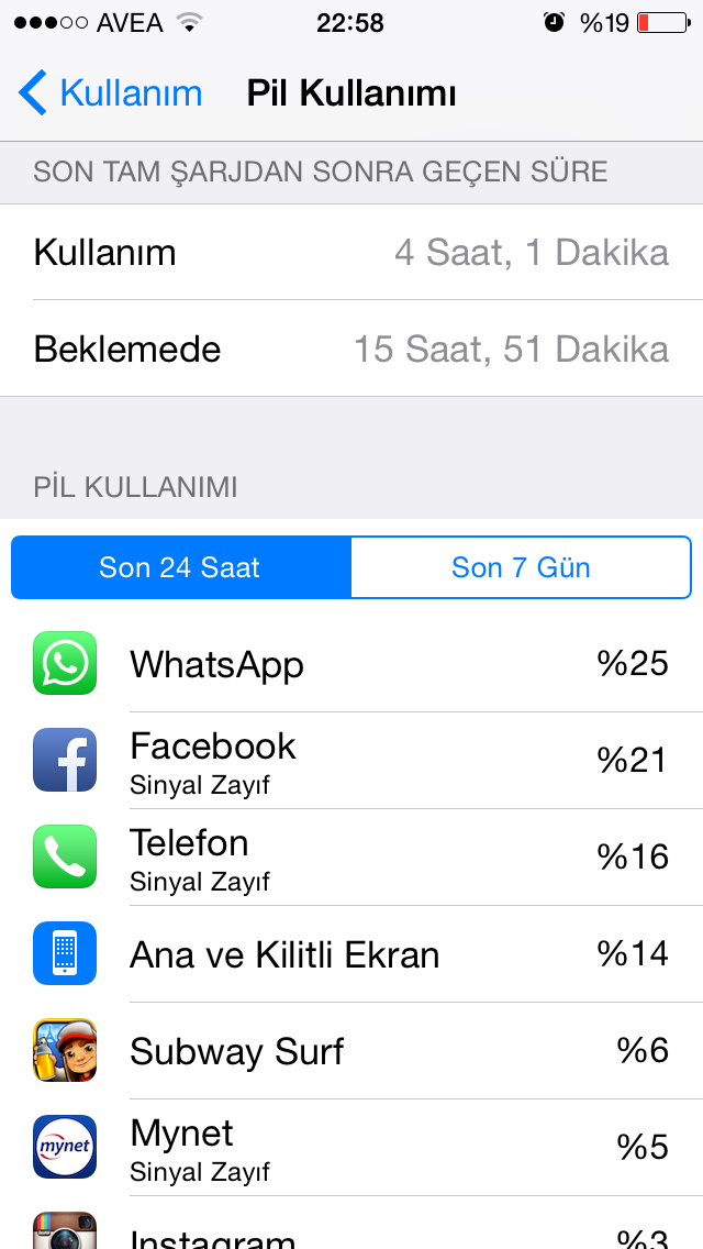 İlk kullanım sürem. Karma kullanım. Ekran parlaklığı otomatik ama gündüz olduğu için genelde yüksek. Kimi zaman 3g ile internet kullanımı kimi zaman wifi ile. Eski kullanıma göre iyi gibi geldi sanki. İyi bence