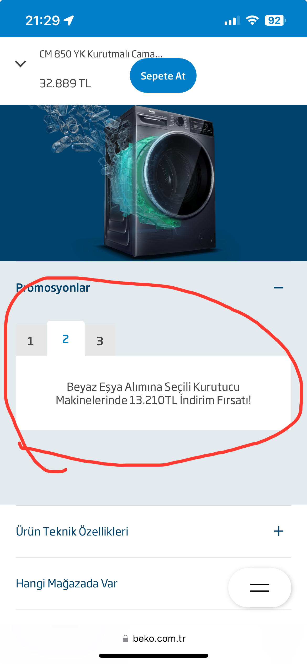 Kampanya böyle kurutma makinesini %50 indirimli almak istiyorsan yanına bir ürün daha eklemelisin. Yani sepette kurutma makinesi yoksa indirimde yok |
