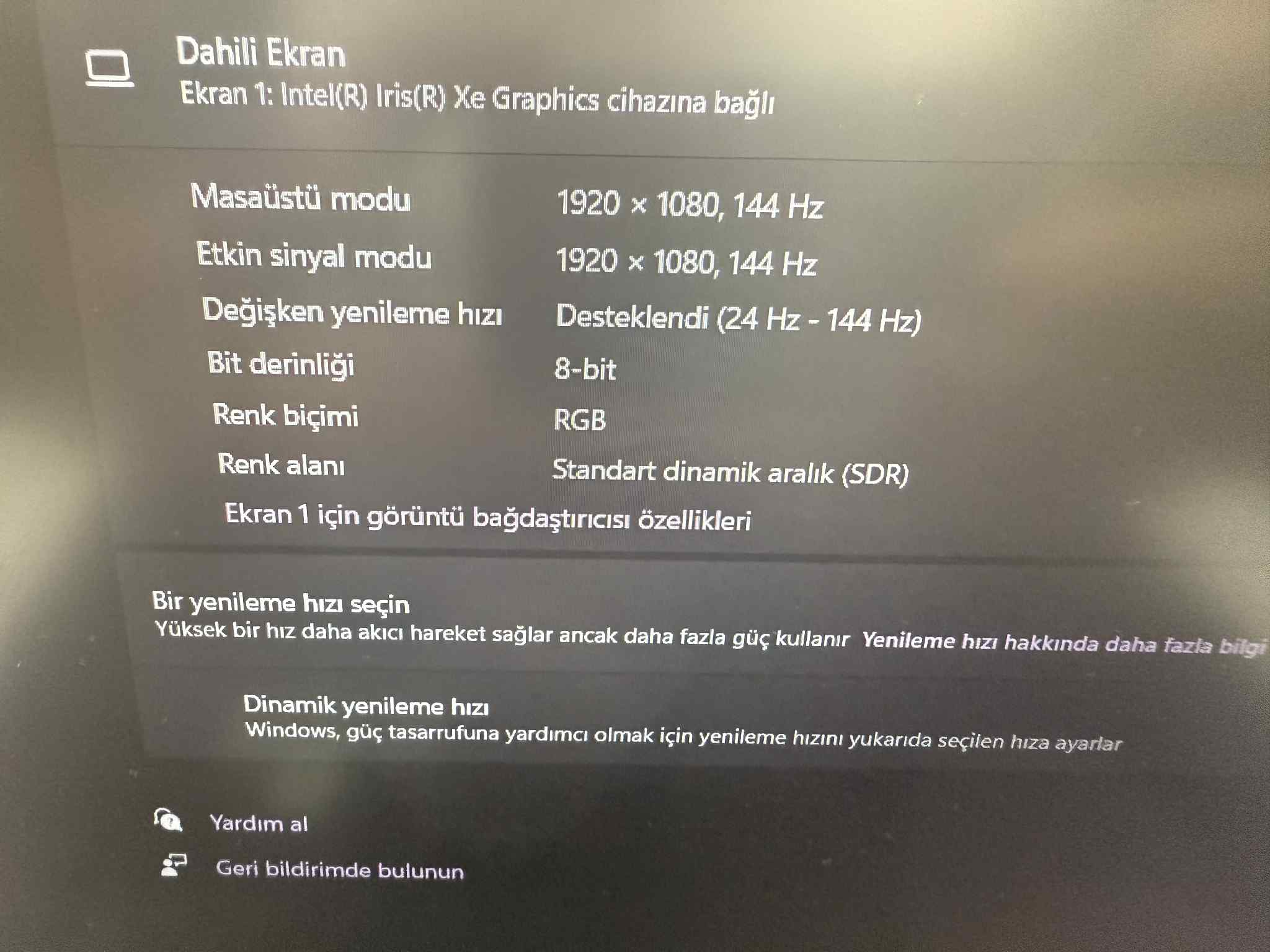 Ekran: 15.6 İnç (1920 & 1080) FHD IPS LED 144Hz Ekran