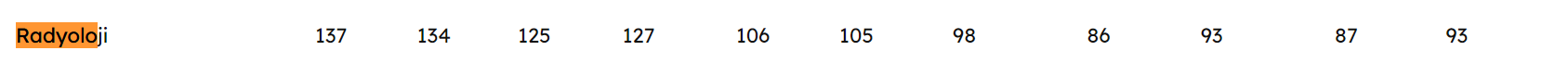ve bu kadar cerrah ne yapacak demişsiniz ama anlaşılan cerrahilerdeki yerleştirmenin ne kadar olduğundan yine bihabersiniz koskocaman bir paragraf yazmışınız ama içerik olsun hepsinde yanlış bilgiler var cerrahi bölümlerde yerleşme orana bakın derim ve radyoloji seçen birinin ilerde cerrahların işsiz kalacağından bahsetmesi kadar gülünç bir durum yok < Resime gitmek için tıklayın > şu an radyoloji 2023 eylül 570 kişi 2023 bahar 400 kişi 2022 son bahar 420 kişi 2022 ilkbahar 770 kişi (aslında bunda girmek gerekliymiş son 10 yılda bölüme alınan radyolojici kadar alınmış) < Resime gitmek için tıklayın > < Resime gitmek için tıklayın > |
