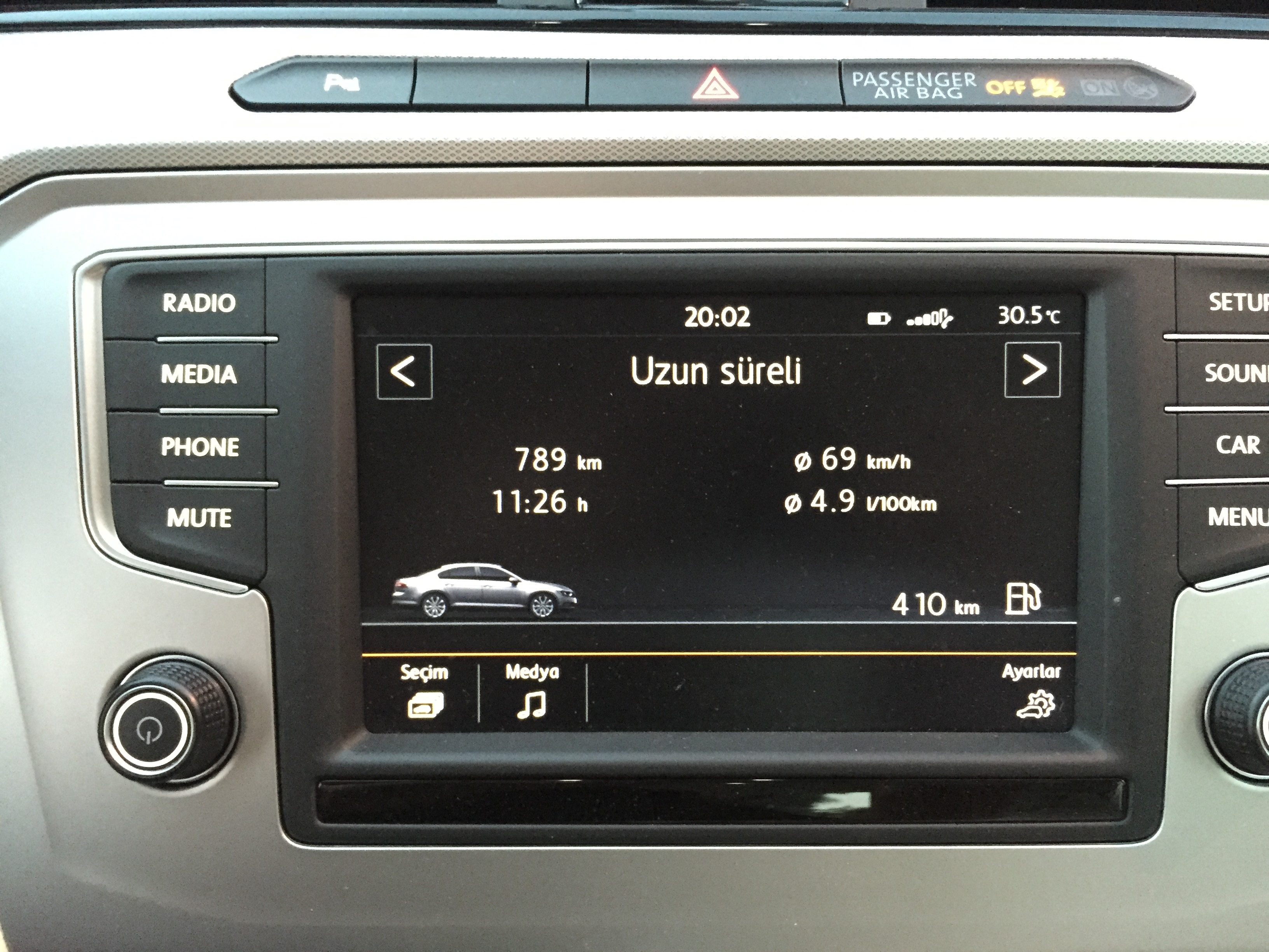 Sattığım dizel otomatik 2015 Passat TDI 120 hp DSG ile şehir içinde gördüğüm en uç değer 16 km dur-kalk kısa mesafe kullanımda 7.7 litre oldu. İnsani şartlarda 5.8-6 litre yakıyor. < Resime gitmek için tıklayın > Uzun yolda da 5 kişi Tokat-Sinop gidiş geliş şehir içi hepsi dahil klima açık tüketim ise 4.9 litre. Uzun yolda 120 sabit kullanırım. Şehir içlerinde sahil yolunda sabit radar olduğu için 75 sabit. < Resime gitmek için tıklayın > Umarım yardımcı olmuştur. |