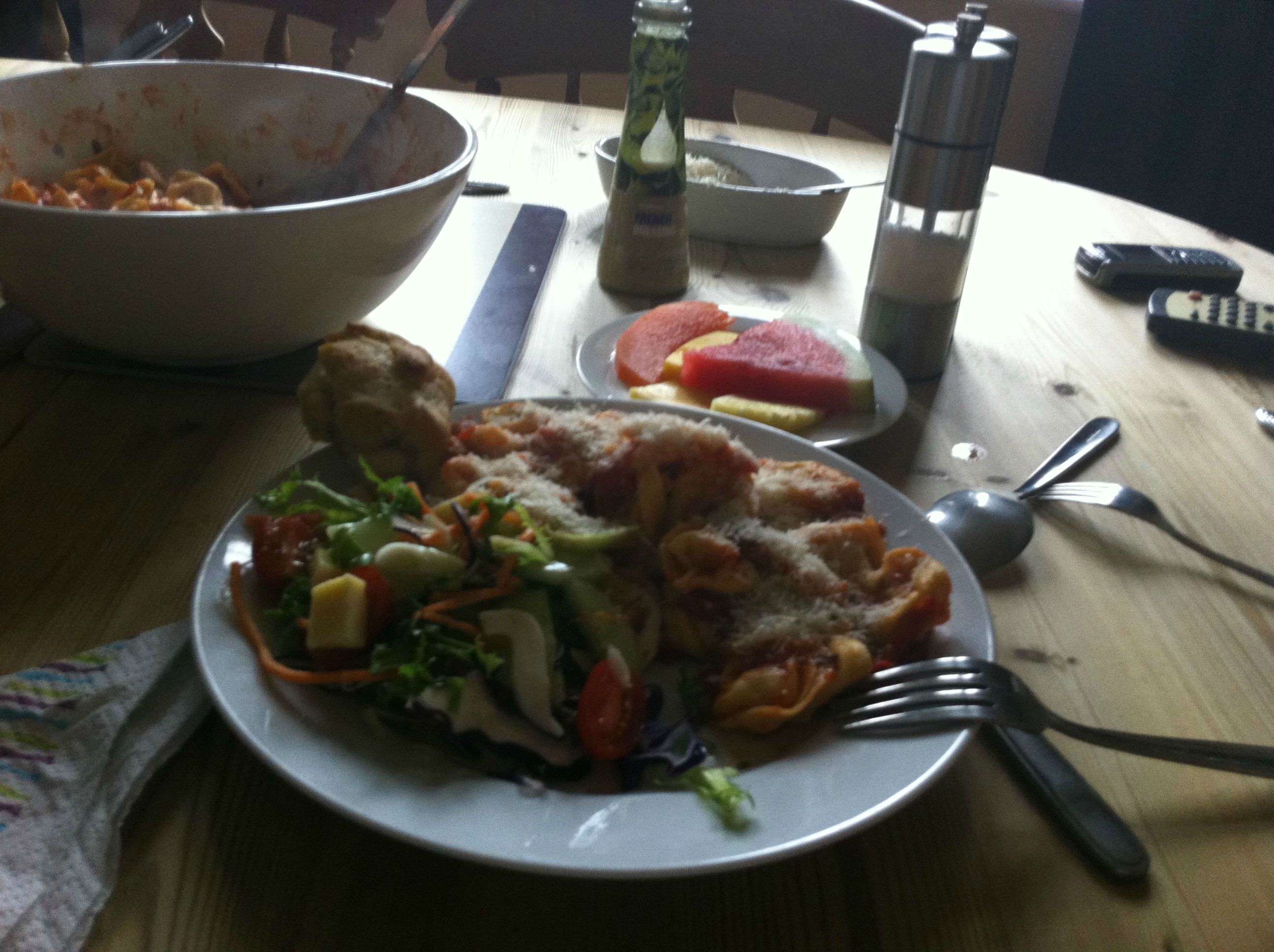 zencefilli ekmek, tortellini ve adını bilmediğim muhteşem salata, yediğim en güzel yemekti