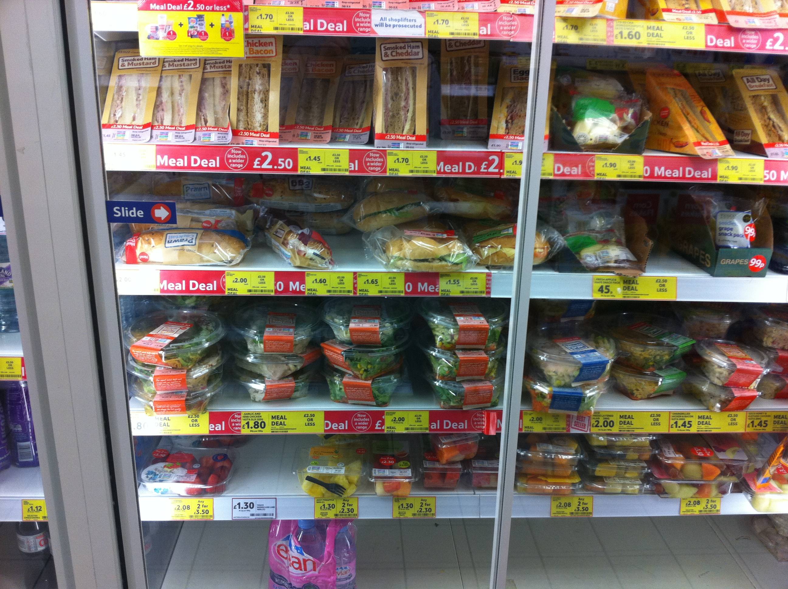 Diğer şehirleri bilmiyorum fakat Bournemouth'da gıda meyve sebze haricinde ucuzdu.ASDA, Tesco ve Lidl gerçekten çok ucuz ve kaliteli ürünler sunuyor.Tesco her köşe başında olduğu için ben orayı tercih ettim, çeşit çeşit ev yapımı sandviçler, salatalar ve makarnalar var, meal deal olayı var birden fazla alınca daha ucuza geliyor, arkadaşınızla giderseniz karlı çıkarsınız.