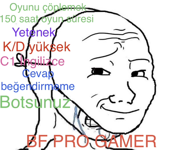 aslında bu gerzeklerin fazla bir şey yapmasına gerek yok. az beyinleri olsa bf5'i tekrardan ele alırlar yeni haritalar, kızıl orduyu falan getirirler, brothers in arms, medal of honor gibi tarihi gerçekçileğe de ulaşsalar millet akın akın oyuna döner zaten. kendilerine call of duty gibi çıkan caciki oyunlar yerine counter-strike gibi 20 yıldır hüküm süren baba bir oyunu örnek almalılar. düşünsenize adamlar cs-go'dan cs2 yükseltmesini bedava verdiler.(seçkin hesaptan bahsediyorum) aha buraya yazıyorum üzerine milyonlar harcanmış yeni bir çöp bizleri bekliyor. inş iflas edip batarlar. |
