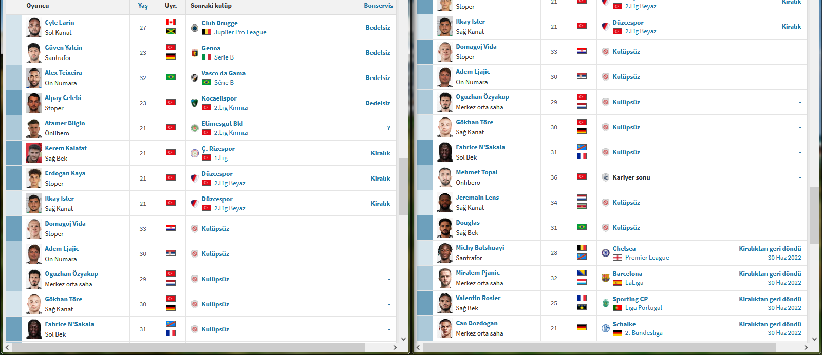 ve ayrılan 15 oyuncudan sadece 3 ü kulüp buldu kiralıklar hariç Güven Alex Larin |