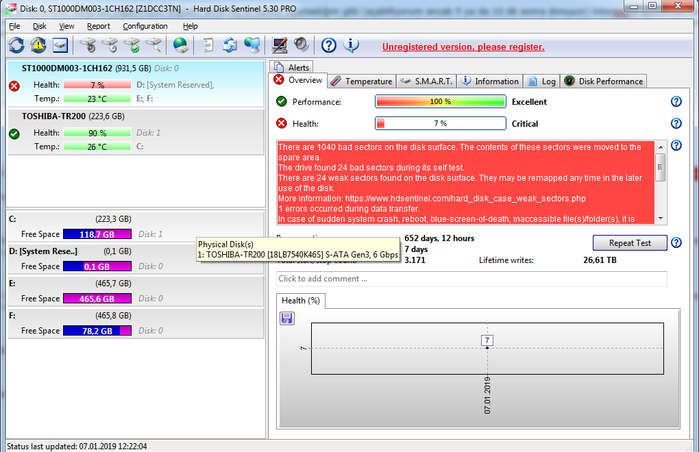 Sdd'niz sağlığı da %10 oranında düşmüş gözüküyor. Kesin bir şey diyemem tabi ama ilk mesajımda dediğim gibi sağlığı çok az azalsa bile bilgisayarınızda karşılaştığınız hataları verme ihtimali var.