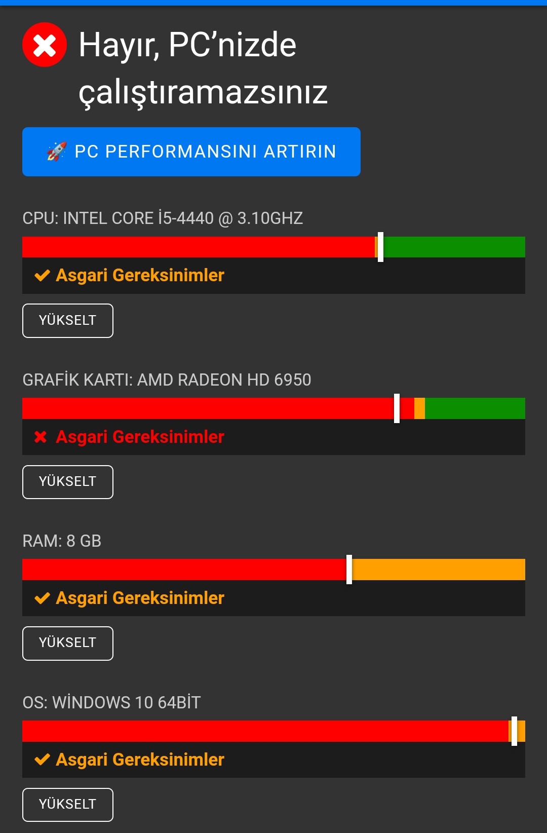 i5-4440 AMD Radeon HD 6950 8gb ram(8x1) Bilgisayar acarmi 30 fps yeterli olur bu sitede açmaz yazıyor (https://sysrqmts.com/tr/games/fifa-22) fakat tam güvenemedim < Resime gitmek için tıklayın >