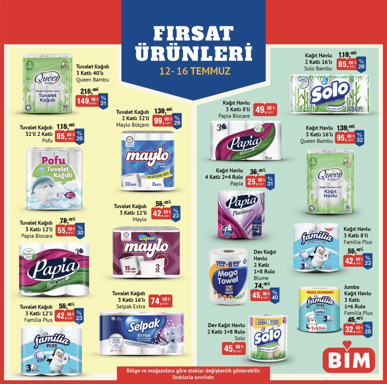 BİM - Kağıt Havlu & Tuvalet Kağıdı (12-16 Temmuz)