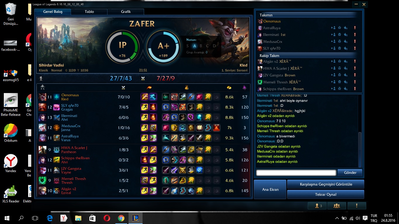 | Totem, KP oranı, minyon, kule, hasar vb. bir sürü gizli detay da gözönüne alınıyor sanırım gizliden. Genelde bu tarz skorlarda takımdaki çoğu kişi S-,S,S+ alır ama ilginç olmuş evet. Demek ki oyuna katkını yetersiz bulmuş sistem. |