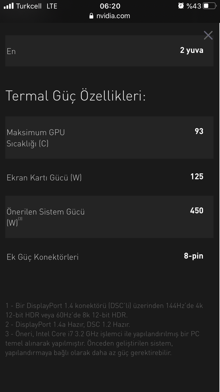 Not: Eklemiş olduğum resimler 5700 xt, 1660s ve 2060 önerilen psu değerini göstermektedir.