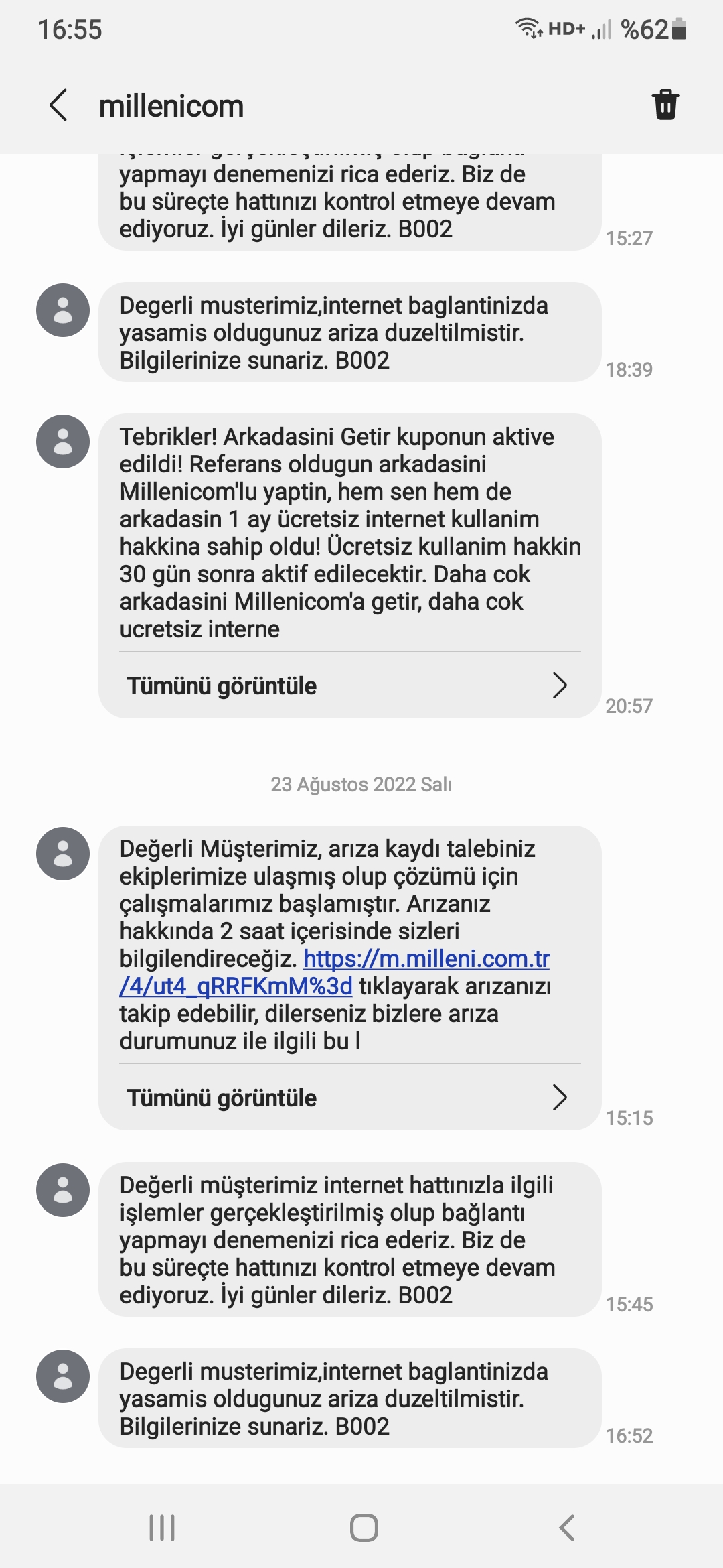 Bu kadar sacma calisan ve teknik destek ekiplerine ulasilmaz bir firma tek turknet saniyordum ama milleni de ondan asagi kalir degilmis. Hem arizayi cozmuyorlar hemde ayni otomatik mesaji atiyorlar.