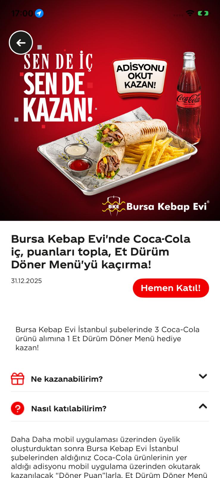 Bursa kebap evi 3 adet Coca cola alımına et menü hediye (İstanbul)
