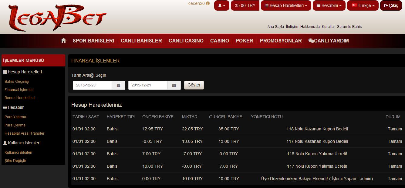 Dün görevdeydim ondan dolayı forumla pek ilgilenemedim ancak bugün fırsat oldu. Dün bahis işiyle uğraşan arkadaşım 3 maç söyledi bunlardan bir tanesinin garanti olduğunu diğer iki tanesinin garanti olmadığını ama genede bahis yapabileceğimi söyledi bende kasayı riske atmadan garanti maçada diğerlerine bahiste bulundum hiç ummadığım şekilde kısa sürede ummadığım şekilde kar elde ettim. Ayrıyetten ne kadar güvenilir bilemiyorum ama dün reklamını gördüğüm ilk üyeliğe ücretsiz 10 tl bahis bonusu veren bahis sitesine üye oldum oradanda garanti bahsi oynadım. Sonuçları ve Ekran görüntüleri alttadır.