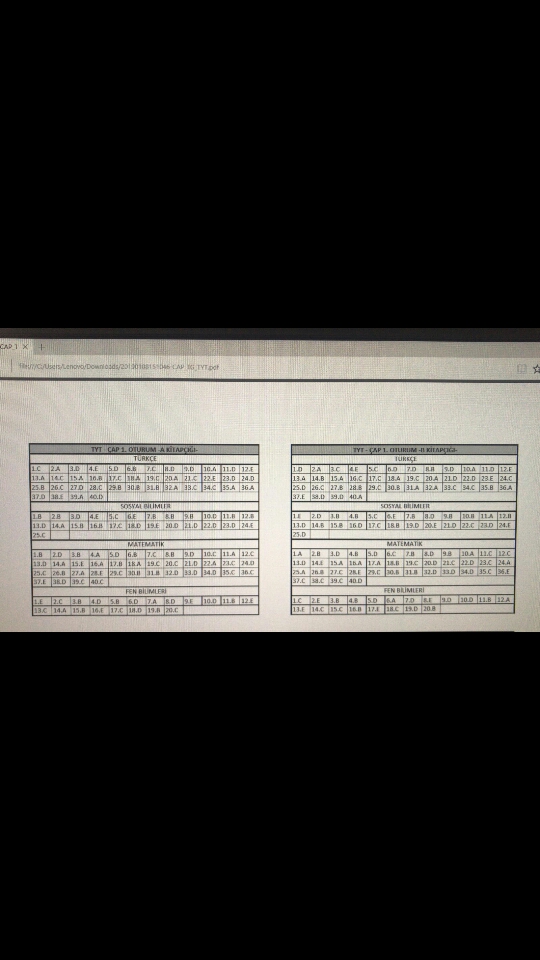 Çap Türkiye geneli cevap anahtarı olan