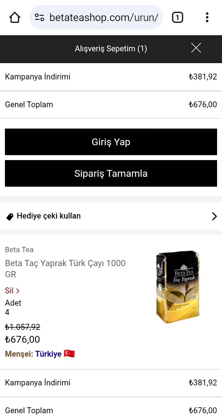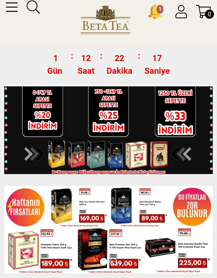 Beta'da kampanya devam ediyor. Taç Yaprak çayın kilosu 175 liraya geliyor, eğer 2 adet alırsanız. Seylan Çaylarının bazılarında da 2 al 1 öde var. https://www.betateashop.com/?utm_campaign=DonanimHaber&utm_medium=referral&utm_source=DonanimHaber |