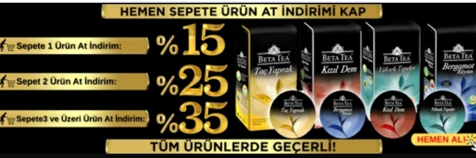< Resime gitmek için tıklayın > BETA TEA Sepete en az 3 ürün attığınızda sepette %35 indirim. Tüm ürünlerde geçerli,tüm ürünler dahil. 3 paket 1 kg Beta Tea Taç Yaprak sepete attığınızda 1 paketi ( 1 kg) 171 TL'ye geliyor. 171 TL'ye sahte çayı bile satmıyorlar. BETA indirimleri oldukça sık sık duyuruyorum çünkü Taç Yaprak yazan ve Kızıl Dem yazan çayları sitesinde %30 ~ %35 gibi indirimle sık sık kampanya ile satışta oluyor ve bu fiyata bu çayın dengi yok. Toz,dal,budak açısından da Çaykur'dan açık ara daha iyi. Çaykur Filiz alın bir de Beta Tea Taç yaprak alın,iki paketi de açın koyun yan yana içindeki çayı dalı tozu karşılaştırın. Diğer bana ait konularda olduğu gibi bu konuda da amacım ev ekonominize ve sağlığınıza yardımcı olmak. < Resime gitmek için tıklayın > https://www.betateashop.com/ |