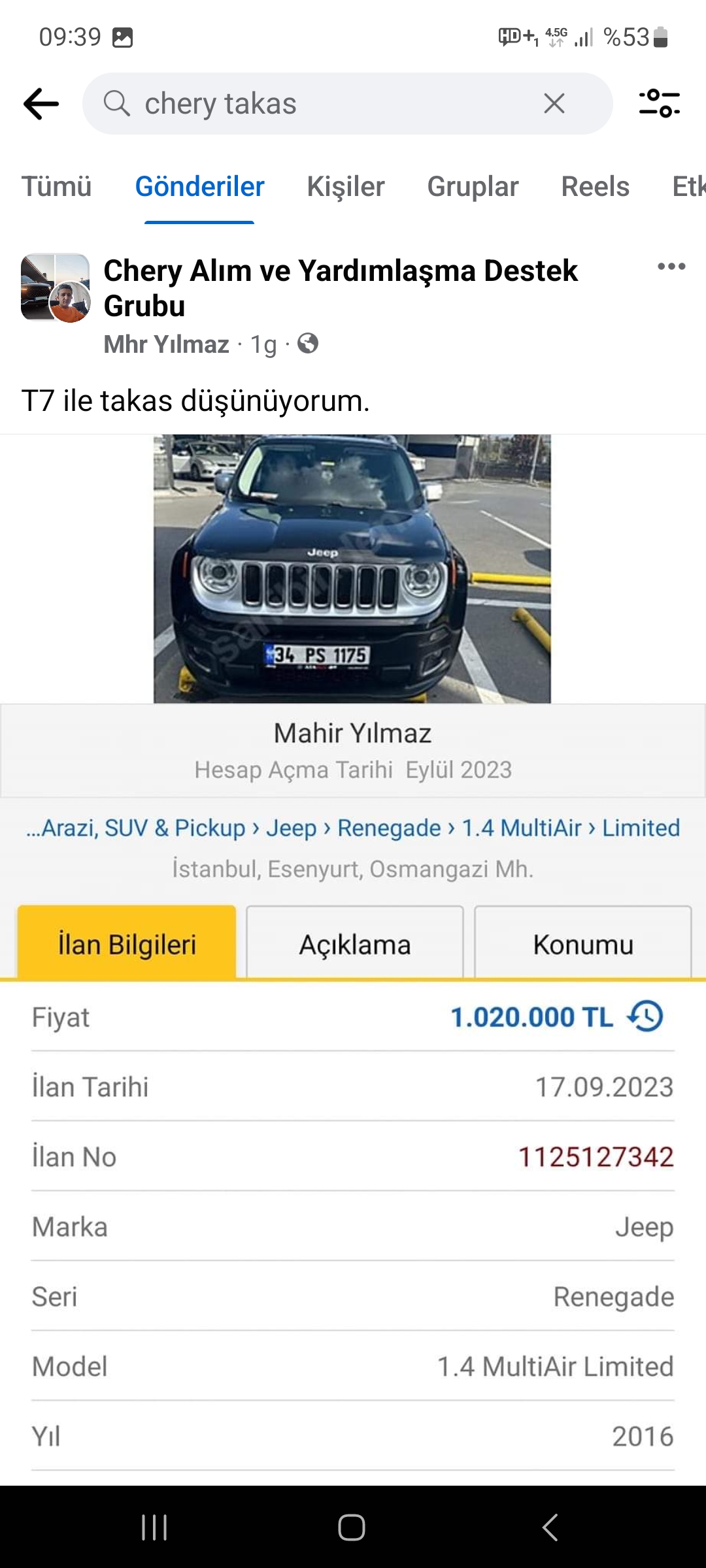 Elemanın güncel mesajlarına bakarsanız sürekli Chery alınması gerektiği ve Chery övgüsü üzerine. ![]() |